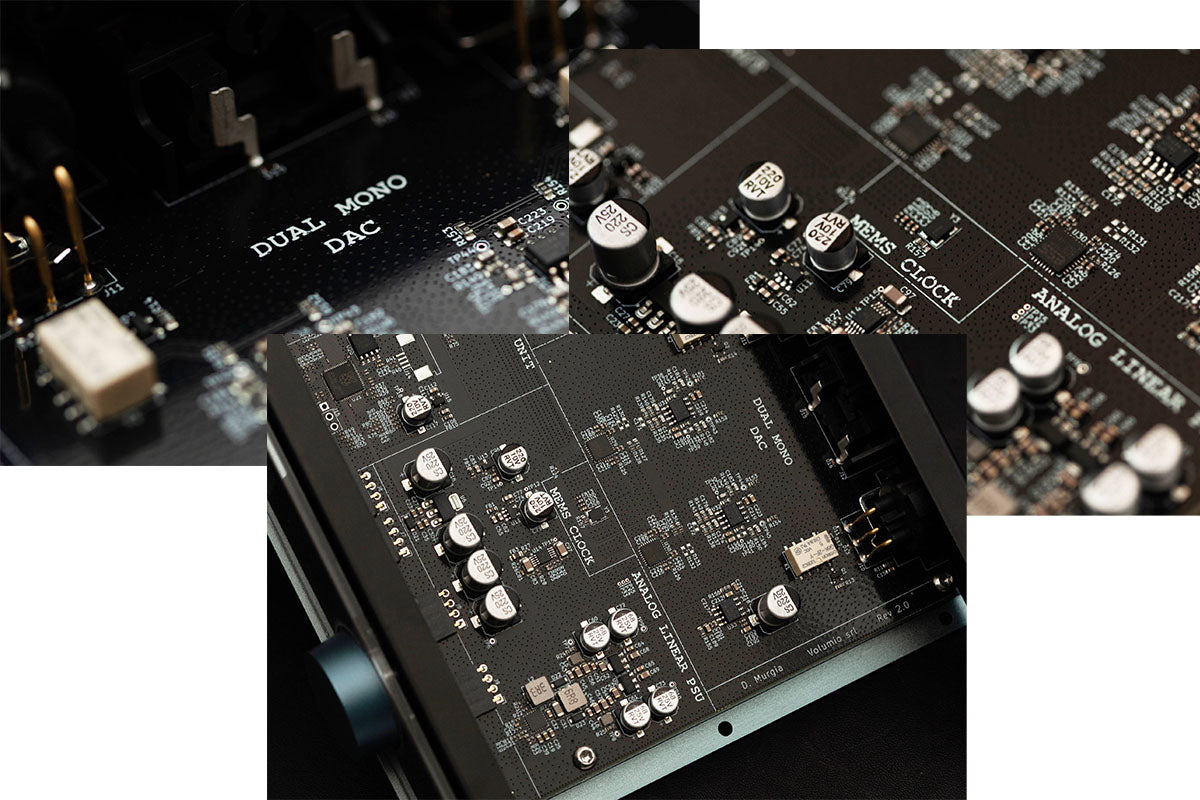 完全に対称で独立した回路にデュアルESS ES9039Q2Mを配置し、チャンネル間の完全な分離、クロストークの最小化、そしてDAC信号経路の極限までの最適化を実現しています。