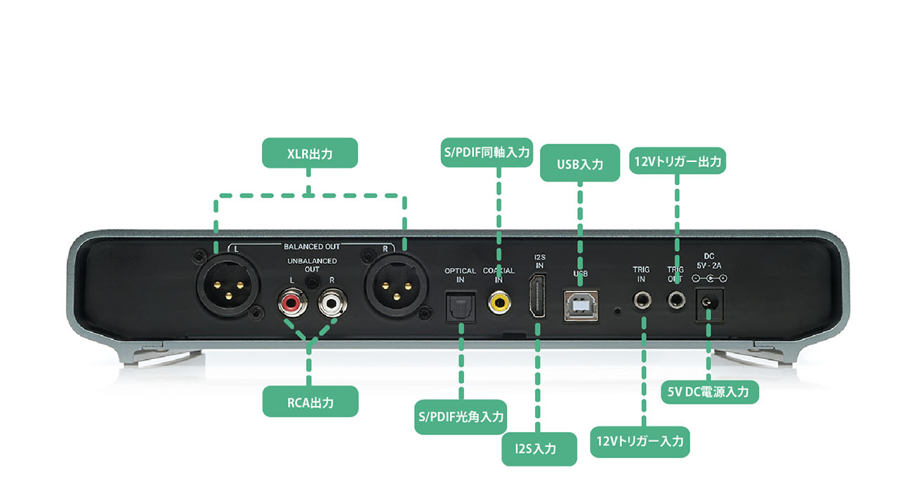 アナログ出力:RCA, XLR(デジタルボリュームによる音量調整可)