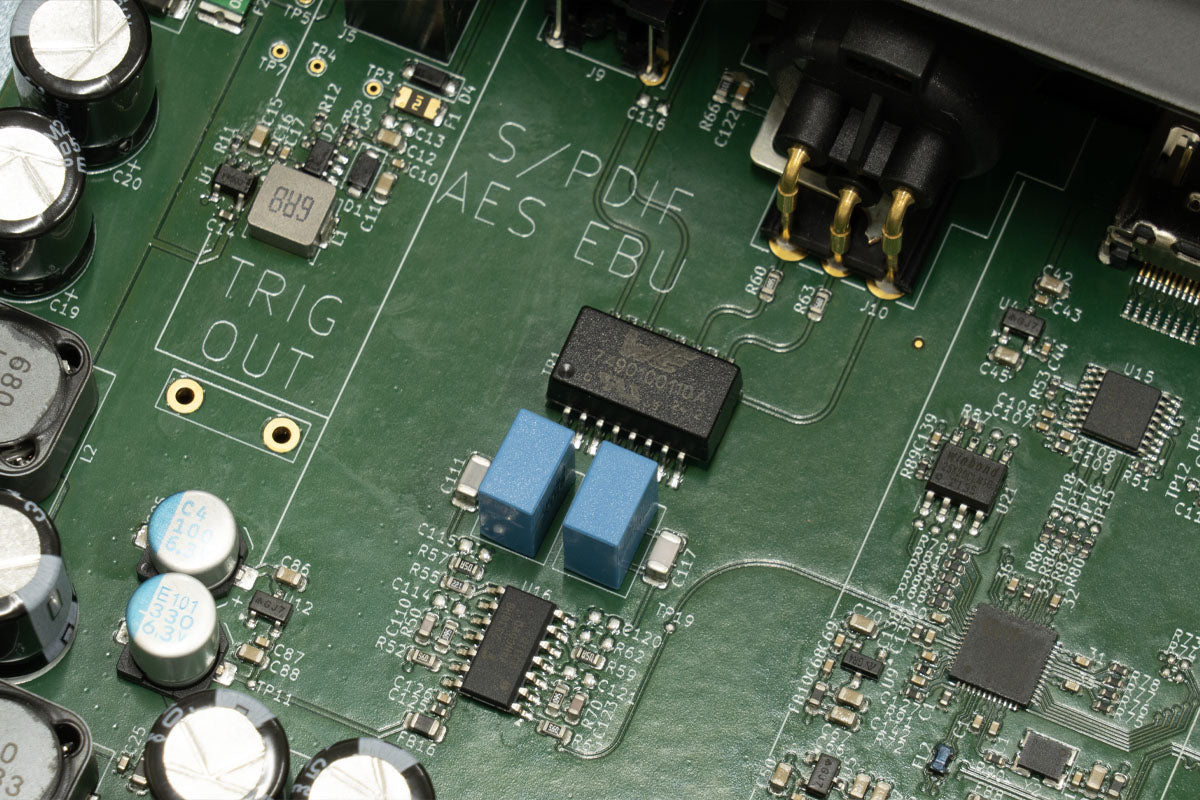 Rivo+は、S/PDIFおよびAES/EBU出力信号を生成するための専用ASICを搭載しており、この重要な処理をCPUから分離しています。この専用ICは、メインプロセッサによる干渉やジッターの影響を完全に排除し、高精度なデジタル出力信号を実現するよう設計されています。