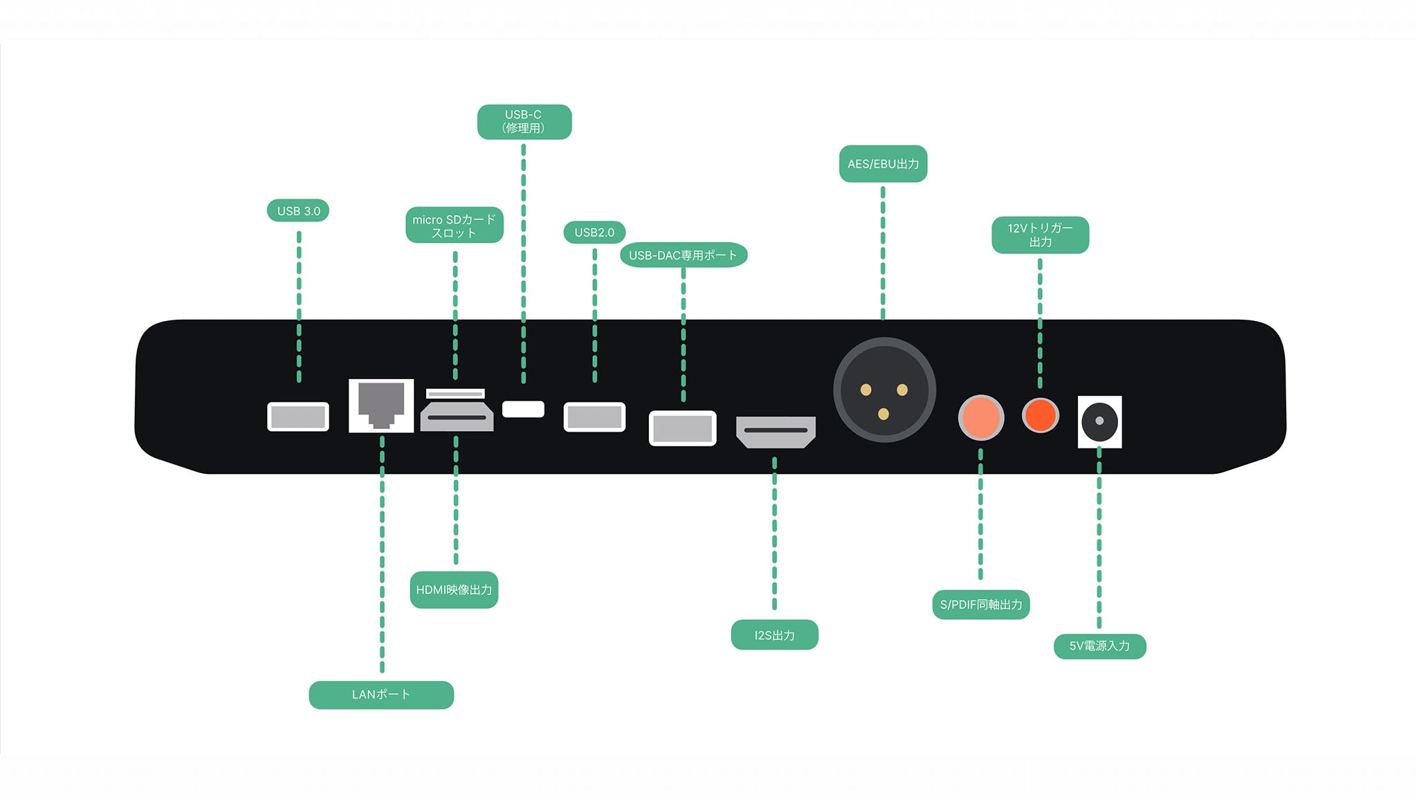 デジタル出力:USB, I2S(HDMI), S/PDIF同軸, AES/EBU